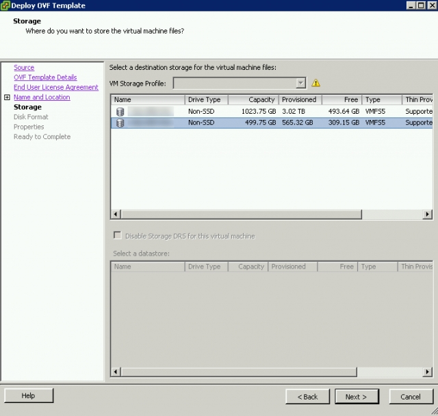 Una vez especifiques el Host, deberás seleccionar el volumen.